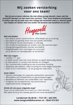 Stuur ons je sollicitatie via e-mail info@hengeveldbikecenter.nl t.a.v. Gert Aarnink